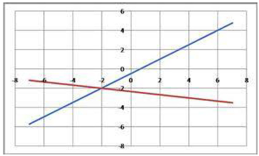 First imagine one starting at the bottom left and going upwards (the blue line). Then the second coming from left to right, intersecting as per the graphic. The scale, units...